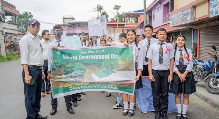 झापा/२२ जेठ-विश्व वातावरण दिवसको अवसरमा झापाको काँकरभिट्टा स्थित सूर्योदय इङ्लिस बोर्डिङ स्कुलले विभिन्न जनचेतनामूलक कार्यक्रम गरी विश्व वातावरण दिवस मनाएको छ । इको क्लब आइतबार कक्षा ८, ९ र १० का विद्यार्थीलाई सहभागी गराई वृक्षारोपण तथा बिरुवा वितरण कार्यक्रम आयोजना गरी विश्व वातावरण दिवस मनाएको हो । Source:- KhabarEducation