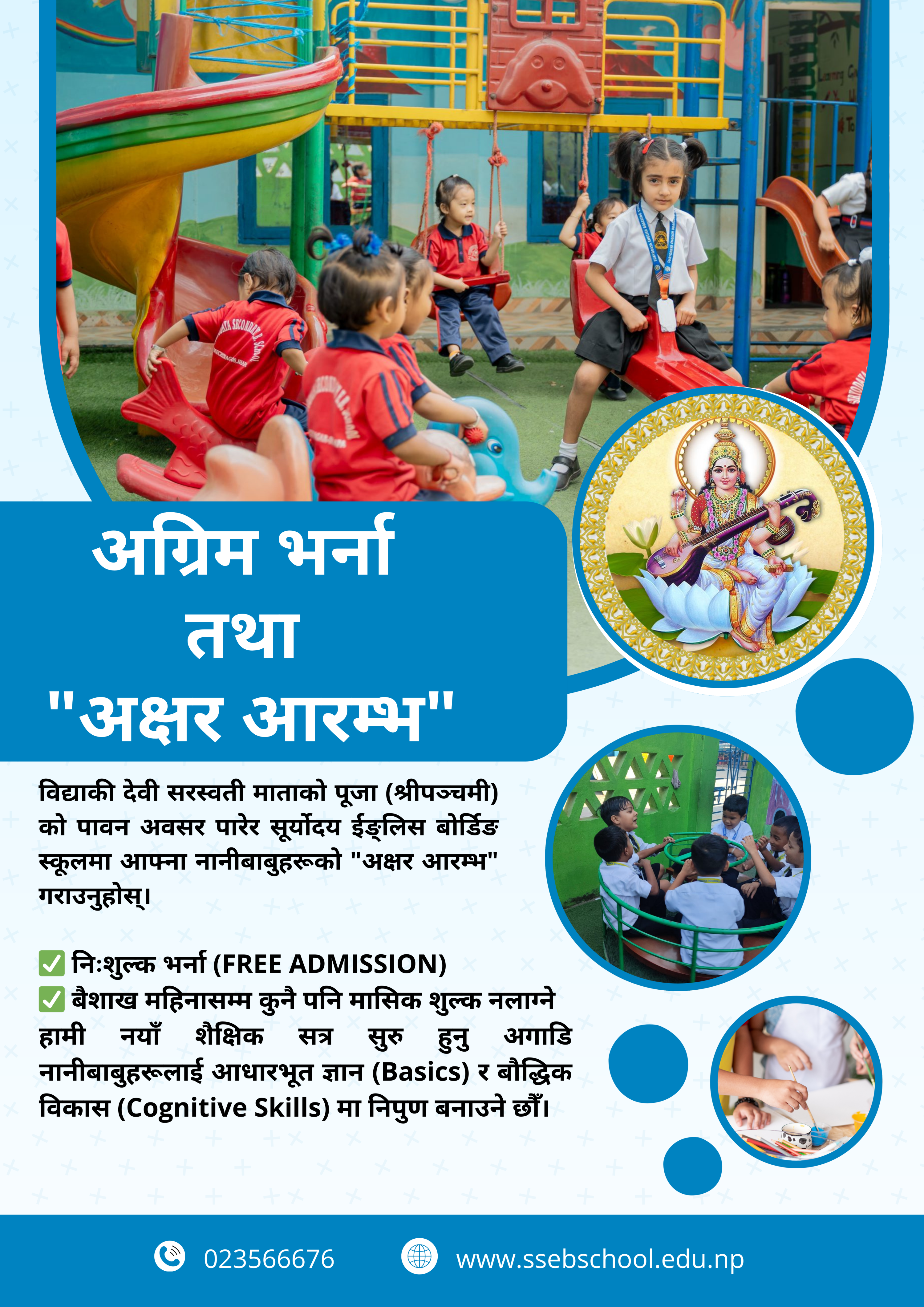 - 1. Admission open for Playgroup and Class Nursery to UKG on Saraswati Puja