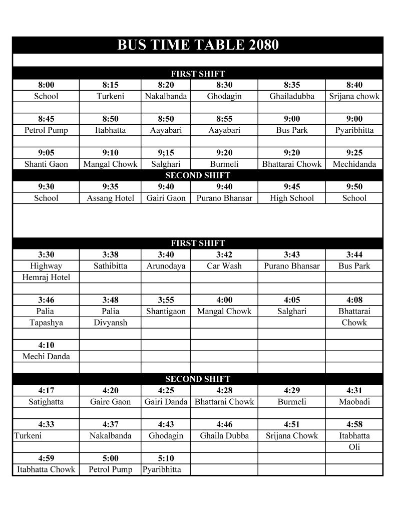 Bus Fees should be paid per month regularly. For the cancellation of bus service, information should be given within the last week of the previous month.
